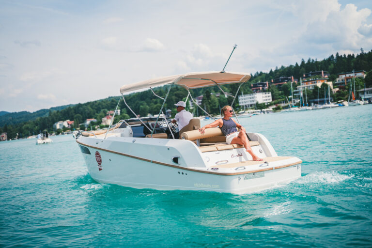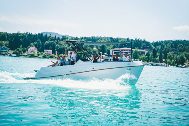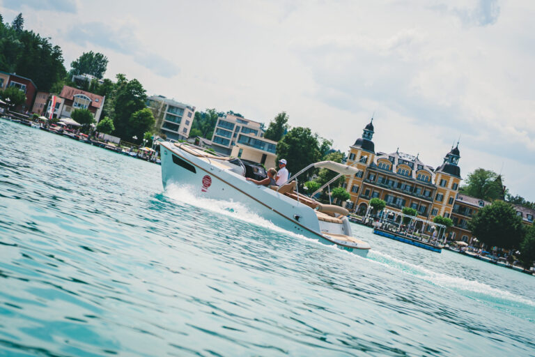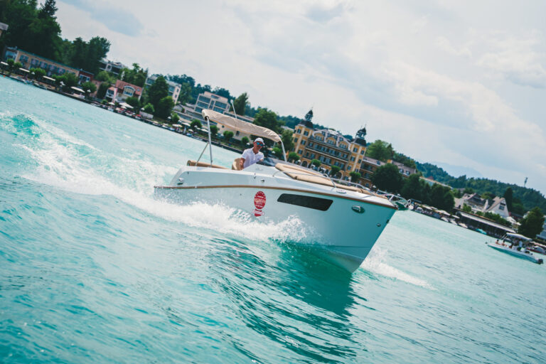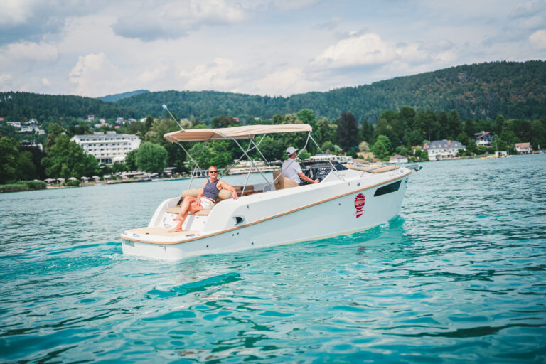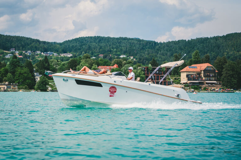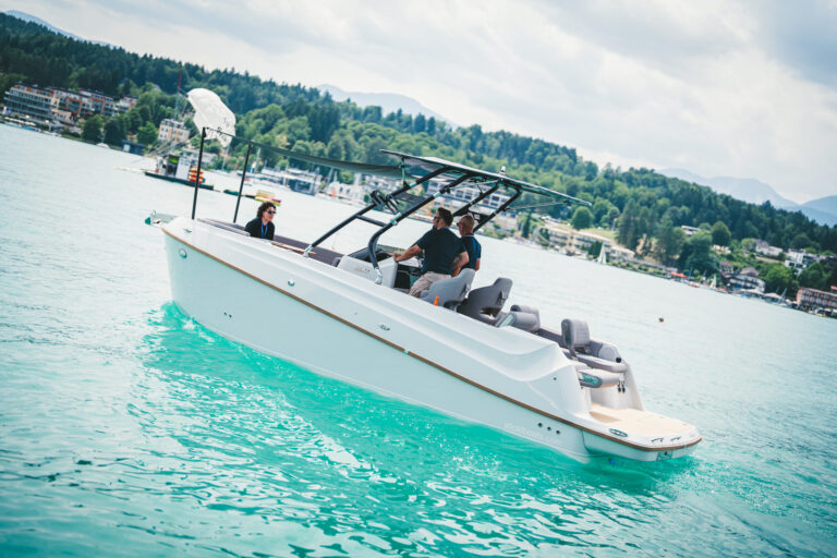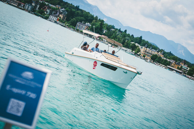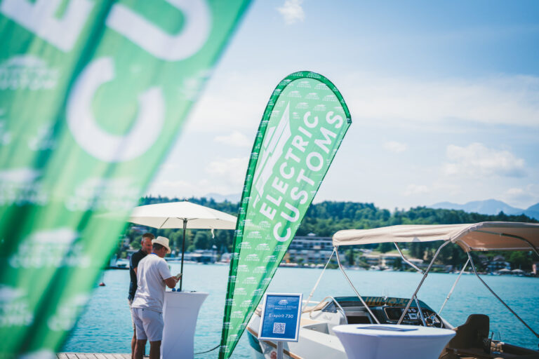 Am azurblauen Wörthersee, um ganz genau zu sein, in der Marina des Seehotel Europa – Beachclub Portofino in Velden, ging bei den Electric Customs Präsentation & Testtagen by Stickl Electric-Yachts so richtig die Post ab. Und es war es sehr elektrisierend, wobei die Faszination des Elektrobootfahrens auf sommerliches Wörtherseefeeling traf.