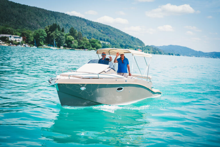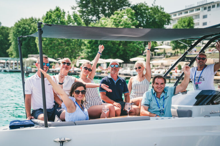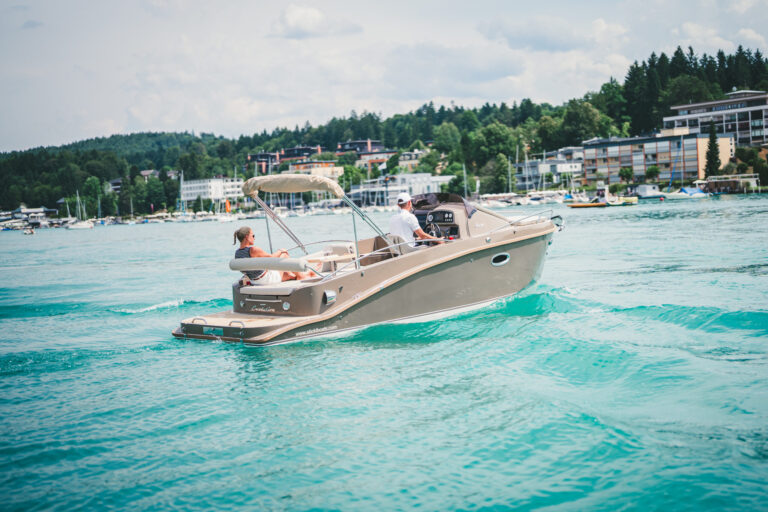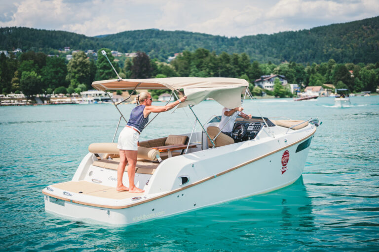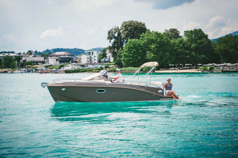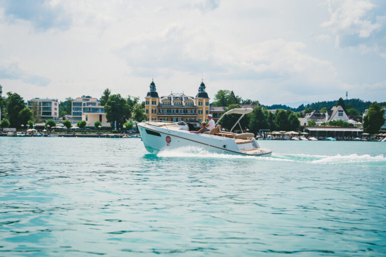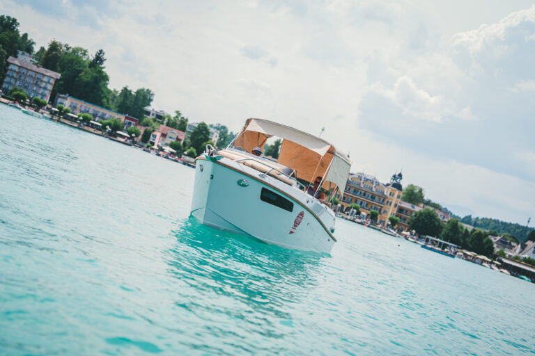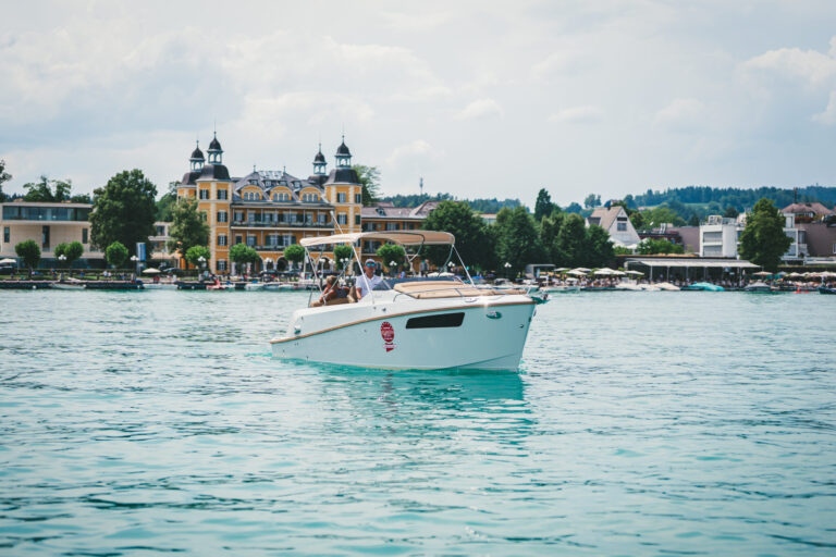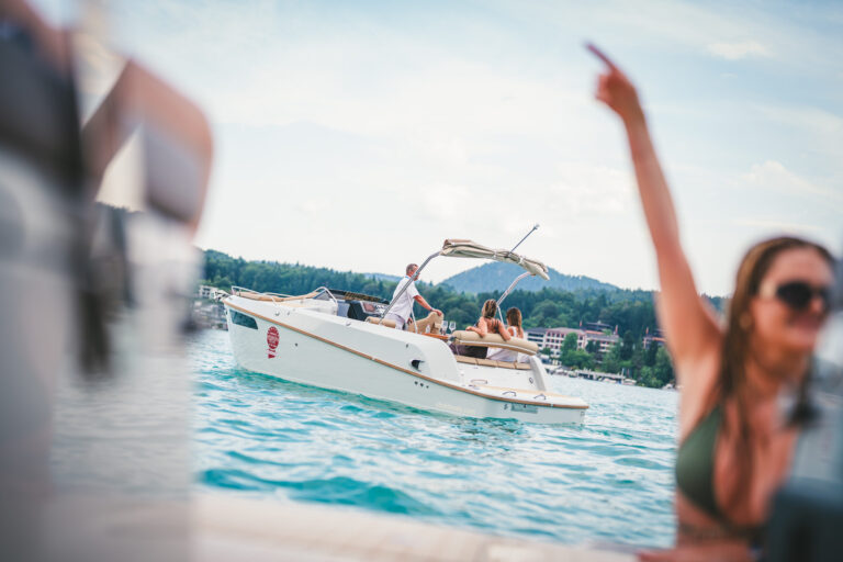 Am azurblauen Wörthersee, um ganz genau zu sein, in der Marina des Seehotel Europa – Beachclub Portofino in Velden, ging bei den Electric Customs Präsentation & Testtagen by Stickl Electric-Yachts so richtig die Post ab. Und es war es sehr elektrisierend, wobei die Faszination des Elektrobootfahrens auf sommerliches Wörtherseefeeling traf.