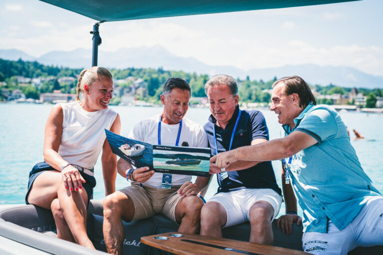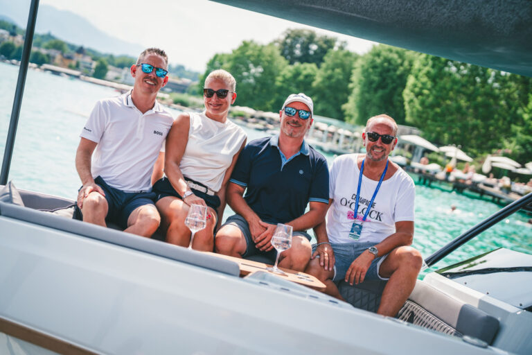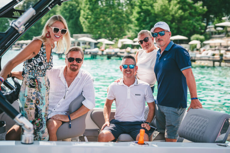 Beim (durchaus seetauglichen) Stickl-Yachts testen, war da unter anderem: Chart-Star Nik P. mit Ehefrau Karin, Ex-Ski-Star Hans Enn, „Kärnten-Event- Mann Wolfgang Kudler, die „Electric-Yachts“- Profis Stefan Smole, Tamas Stickl, Ewald Kopriva, Karolina Gombos, der „Kommerzialrat“ Kurt Faist, das „Unternehmer Duo“- Wolfgang Polmann, Alexander Holzer und vielen Kunden & Freunden endgültig klar, dass man auch ohne Verbrenner so richtig Gas geben kann.