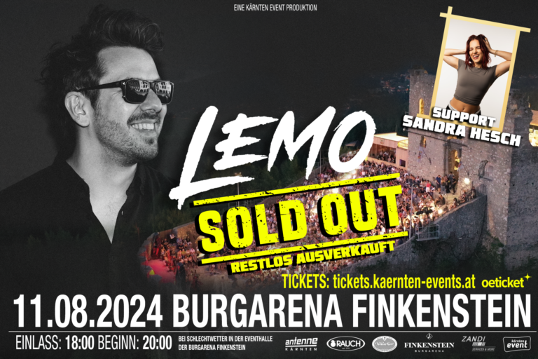 »LEMO«- live«- am »11. August 2024« Burgarena Finkenstein. »Hit auf Hit«- pure Leidenschaft, rockt der Ausnahmekünstler »LEMO«- mit seiner großartigen Band bei seiner Premiere alle seine bekannten Songs und sein Support »SANDRA HESCH«- die Burgarena Finkenstein.